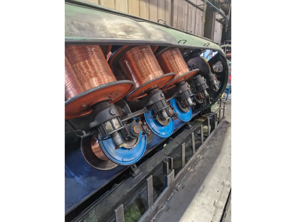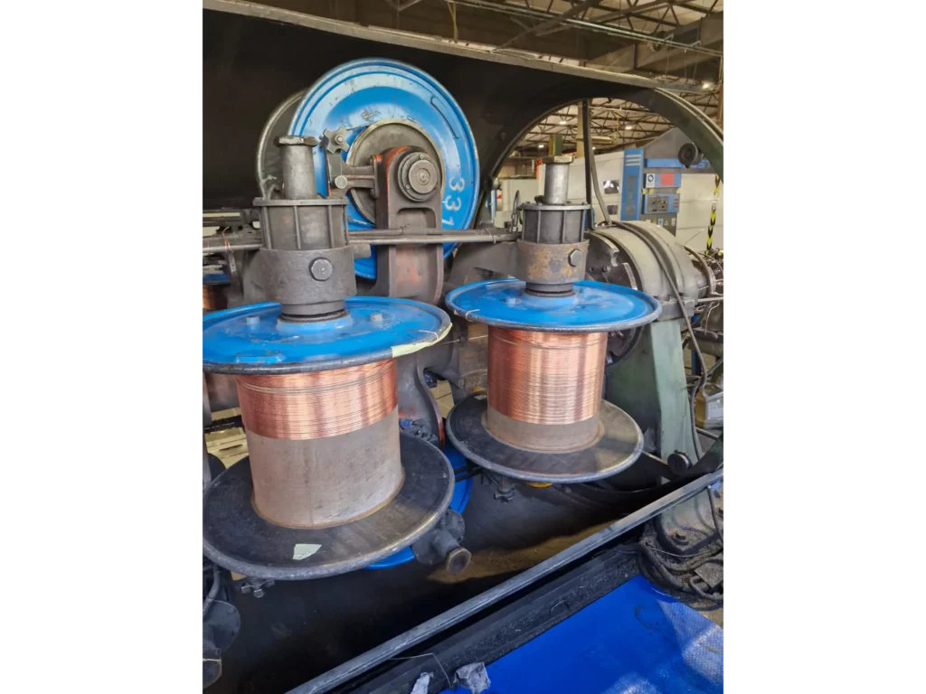 Rigid stranding line to produce round or sectoral compacted conductors.
